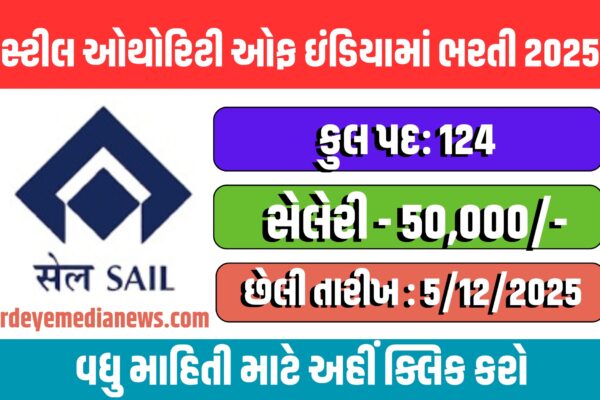 સ્ટીલ ઓથોરિટી ઓફ ઈન્ડિયા લિમિટેડ (SAIL) એ 2025 માટે 124 મેનેજમેન્ટ ટ્રેની (ટેક્નિકલ) પોસ્ટોની ભરતી જાહેર કરી છે. આ તક એન્જિનિયરિંગ ગ્રેજ્યુએટ્સ માટે સુવર્ણ અવસર છે, જેમાં એક વર્ષના ટ્રેનિંગ…