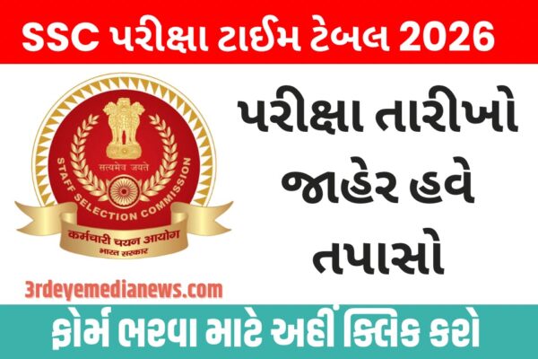 એસએસસી (સ્ટાફ સિલેક્શન કમિશન) દ્વારા 2026-27 માટે પરીક્ષા કેલેન્ડર જાહેર કરવામાં આવ્યું છે, જેમાં SSC CGL, CHSL, MTS, JE અને અન્ય મહત્વની પરીક્ષાઓની નોટિફિકેશન, અરજી અને પરીક્ષા તારીખોની વિગતો છે….