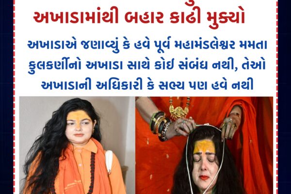 કિન્નર અખાડાએ મમતા કુલકર્ણીને અખાડામાંથી બહાર કાઢી મુક્યો