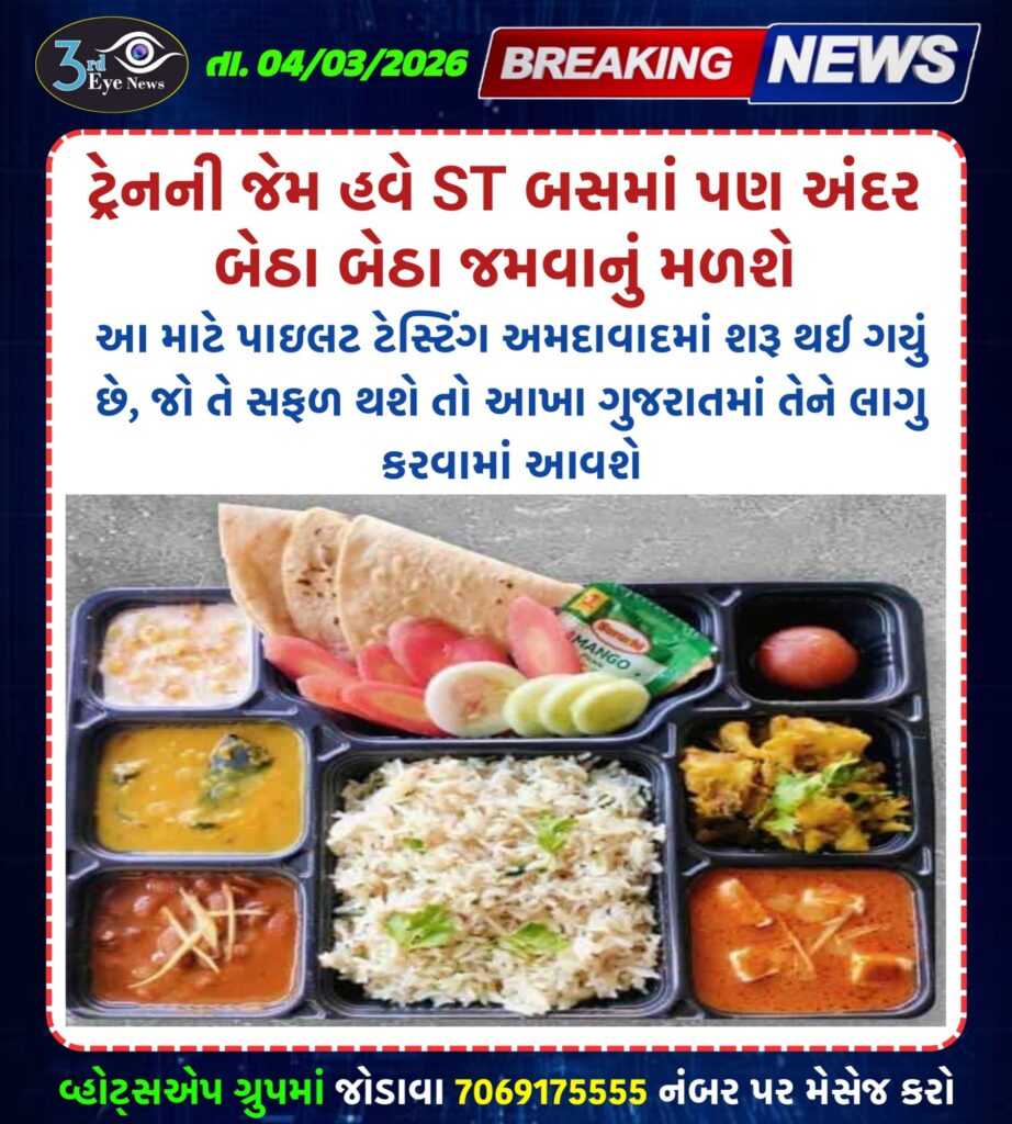 ટ્રેનની જેમ હવે ST બસમાં પણ અંદર બેઠા બેઠા જમવાનું મળશે