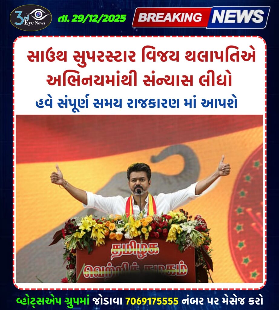 News Politics & Crimeસાઉથ સુપરસ્ટાર વિજય થલાપતિએ અભિનયમાંથી સંન્યાસ લીધો brock33961 month ago1 month ago01 mins Post navigation Previous: શિક્ષણરાજ્ય મંત્રી રીવાબા જાડેજાએ જામનગર ગુરુદ્વારામાં લંગર પ્રસાદ સેવા આપ્યા બાદ લંગર પ્રસાદ આરોગ્યોNext: નીતિ મોહનનું રિલાયન્સ, જામનગરમાં લાઈવ પરફોર્મન્સ થયું Leave a Reply Cancel replyYour email address will not be published. Required fields are marked *Comment * Name * Email * Website Save my name, email, and website in this browser for the next time I comment.